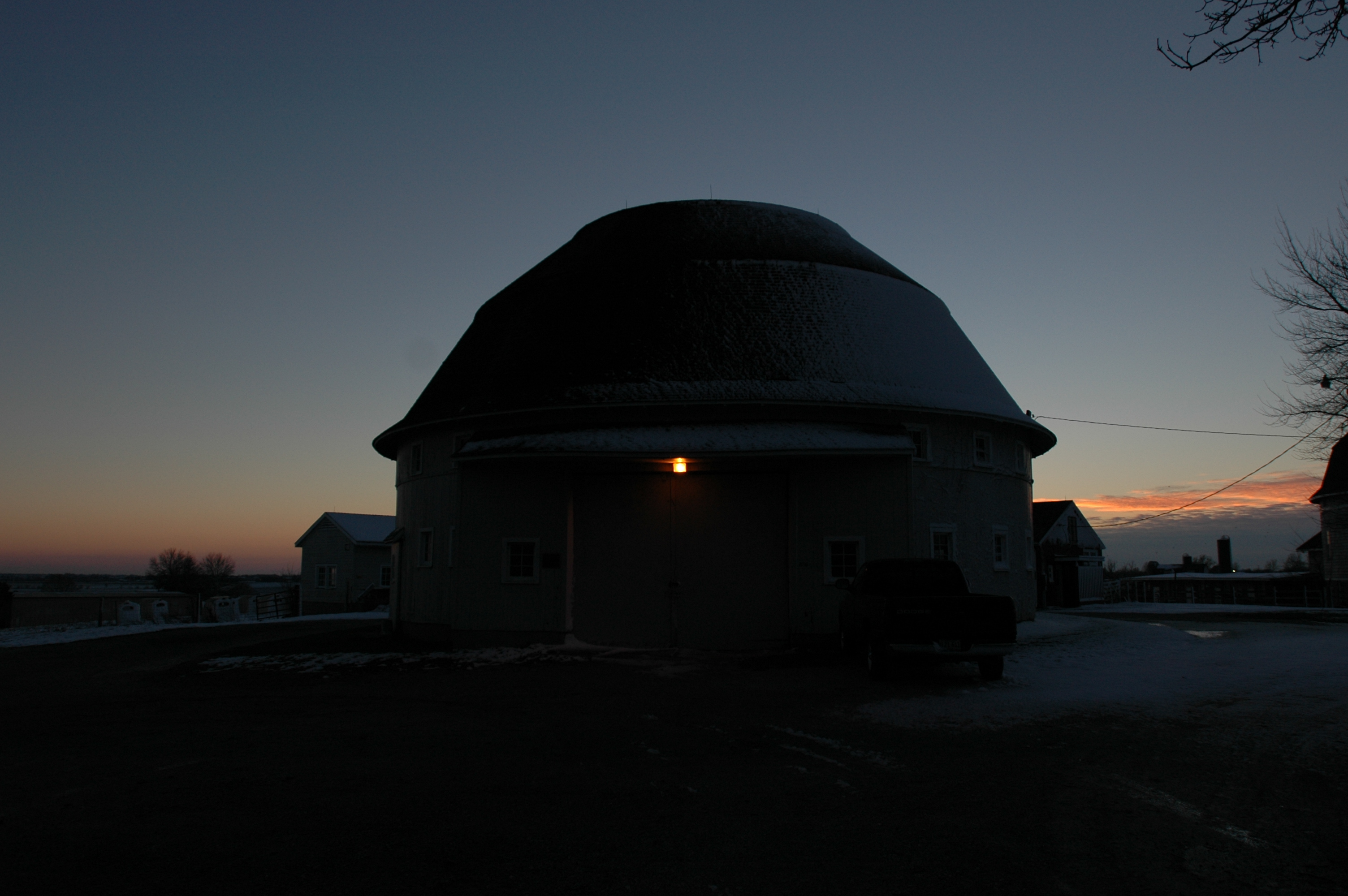 Image 53159 (ROUND BARNS, SUNSET, SNOW)