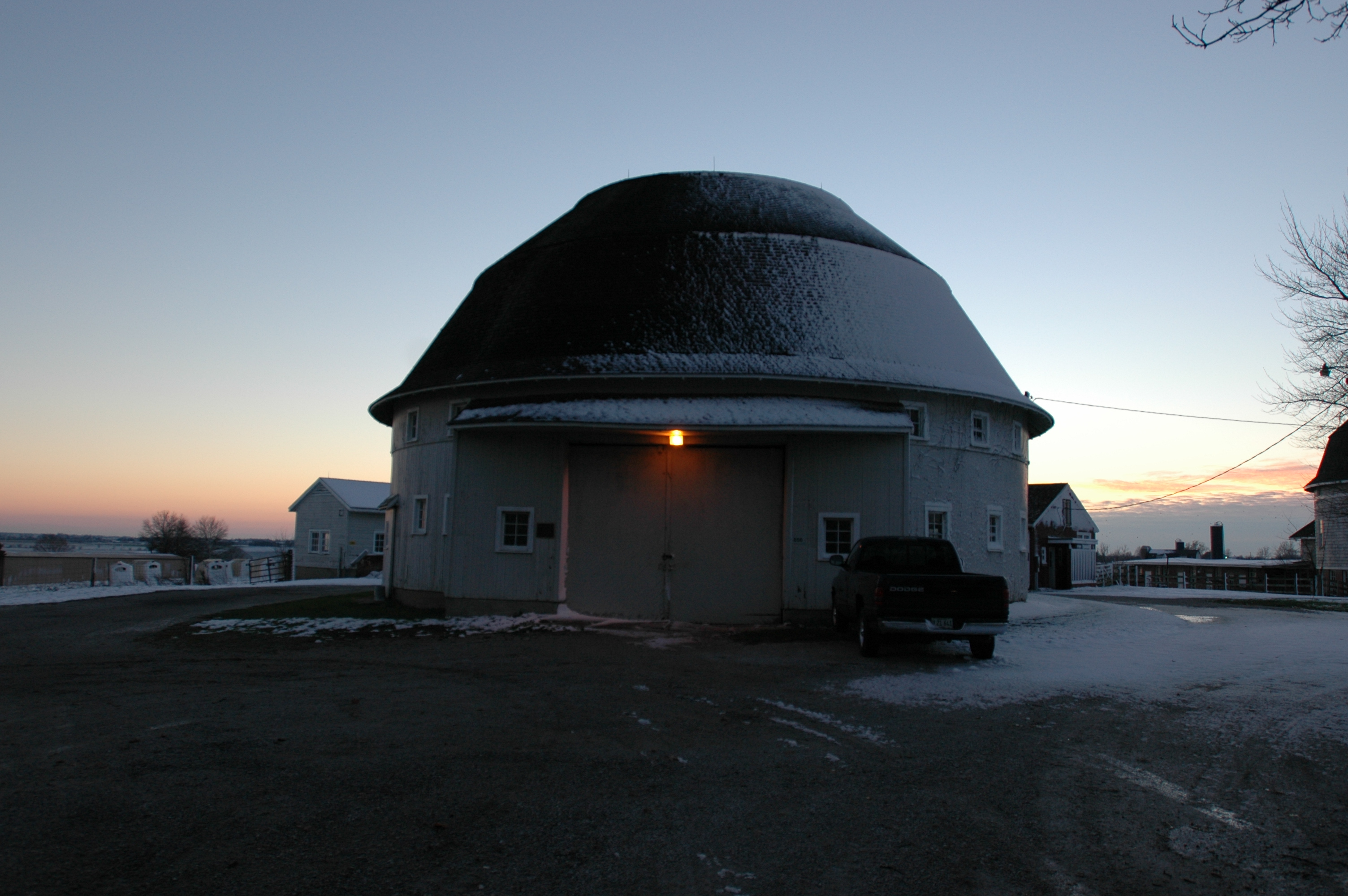 Image 53161 (ROUND BARNS, SUNSET, SNOW)