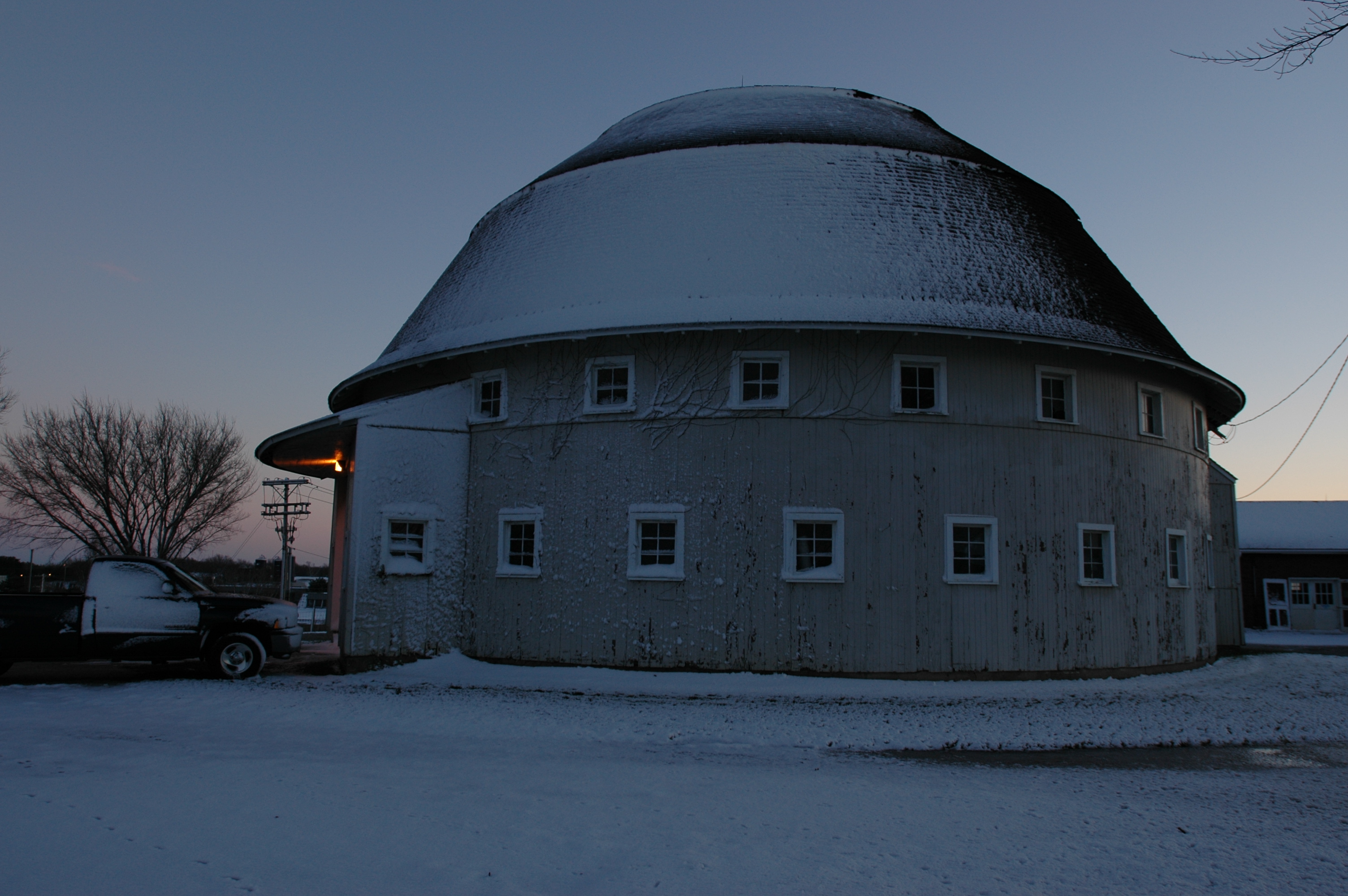 Image 53167 (ROUND BARNS, SUNSET, SNOW)