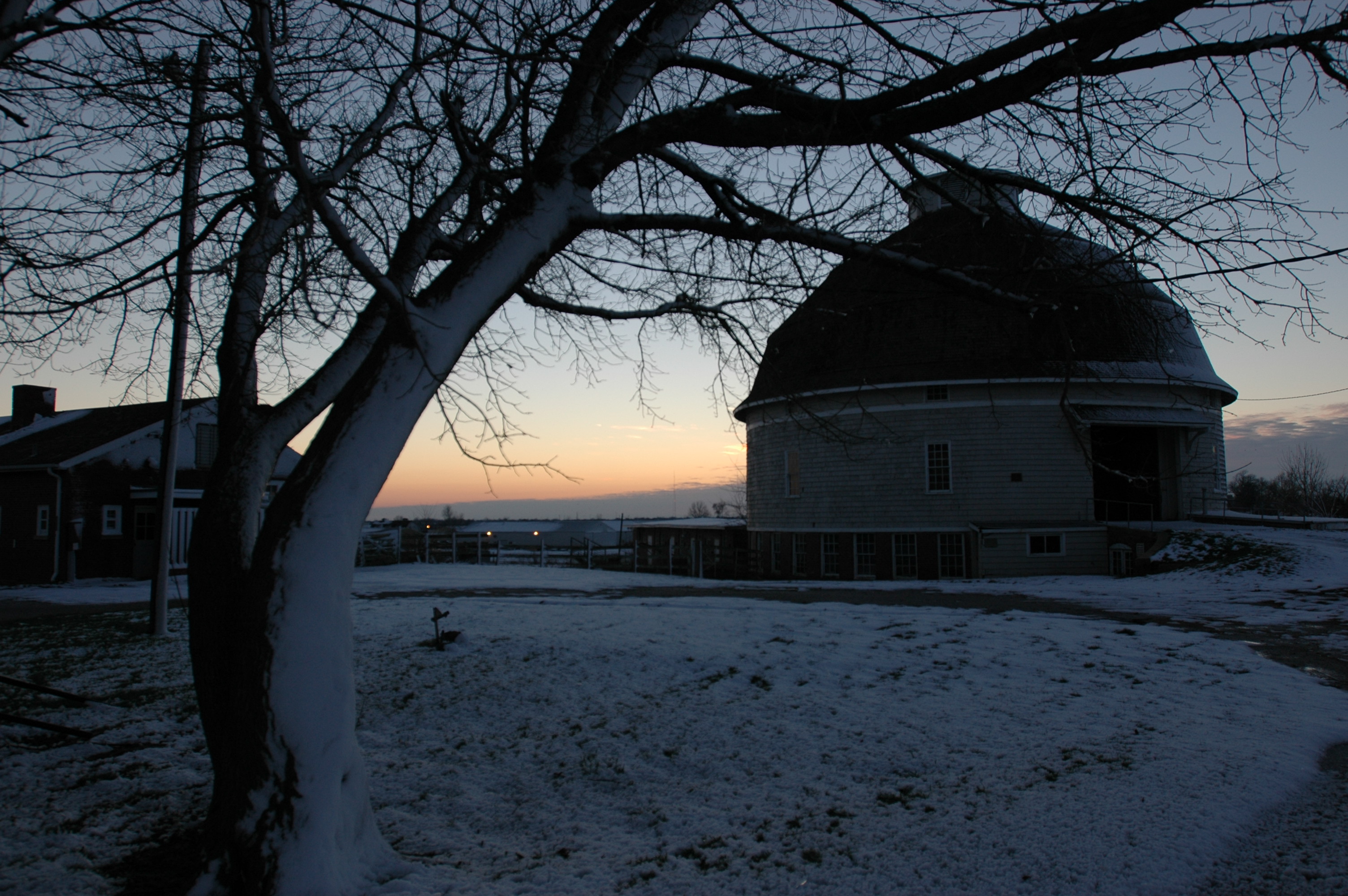 Image 53170 (ROUND BARNS, SUNSET, SNOW)