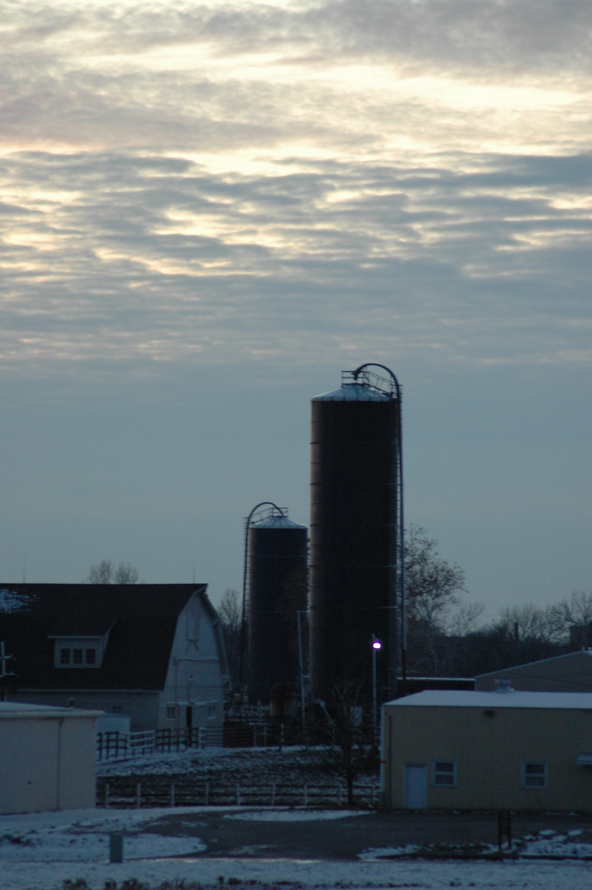 Image 53206 (ROUND BARNS, SUNSET, SNOW)