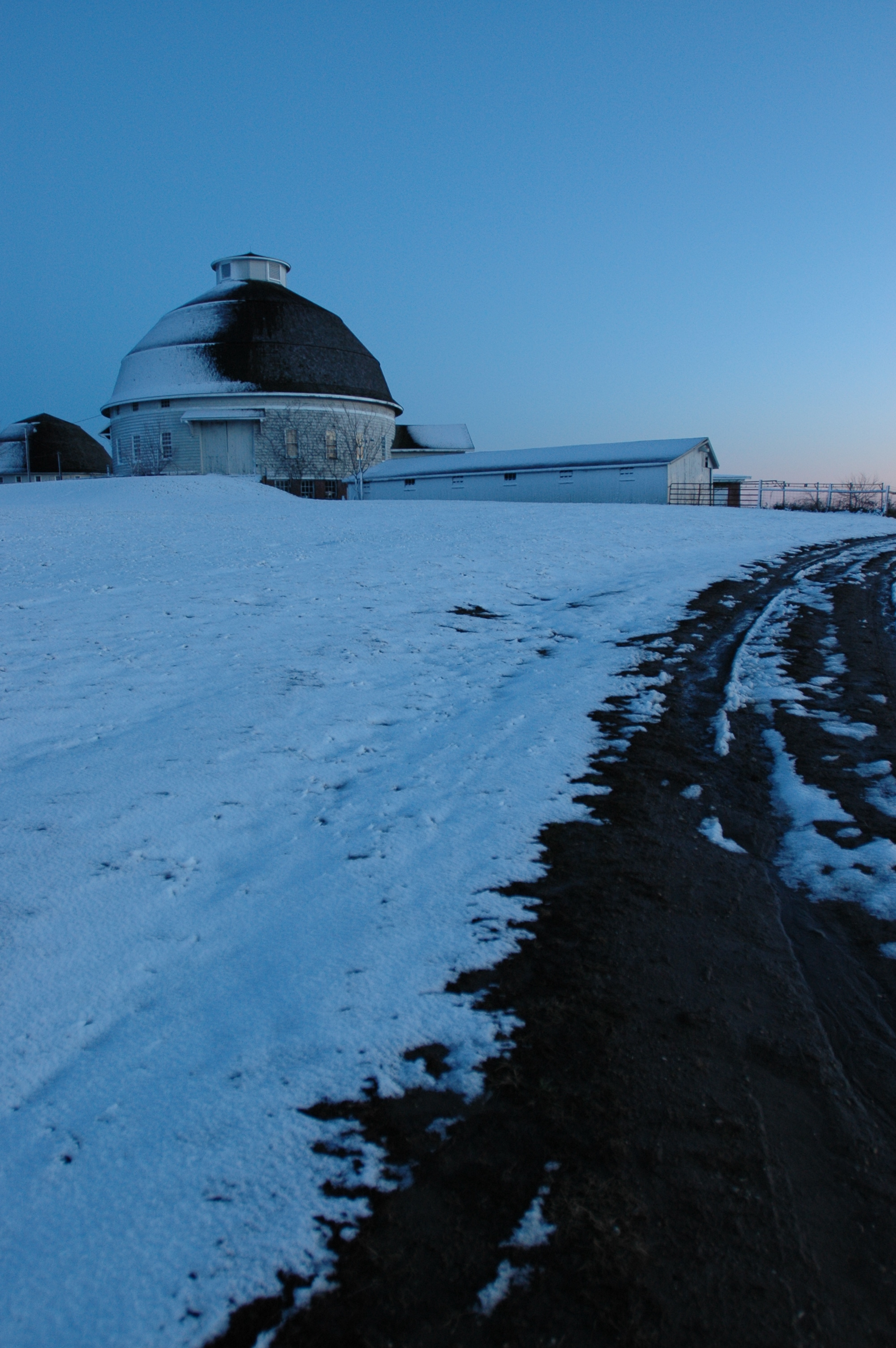 Image 53233 (ROUND BARNS, SUNSET, SNOW)