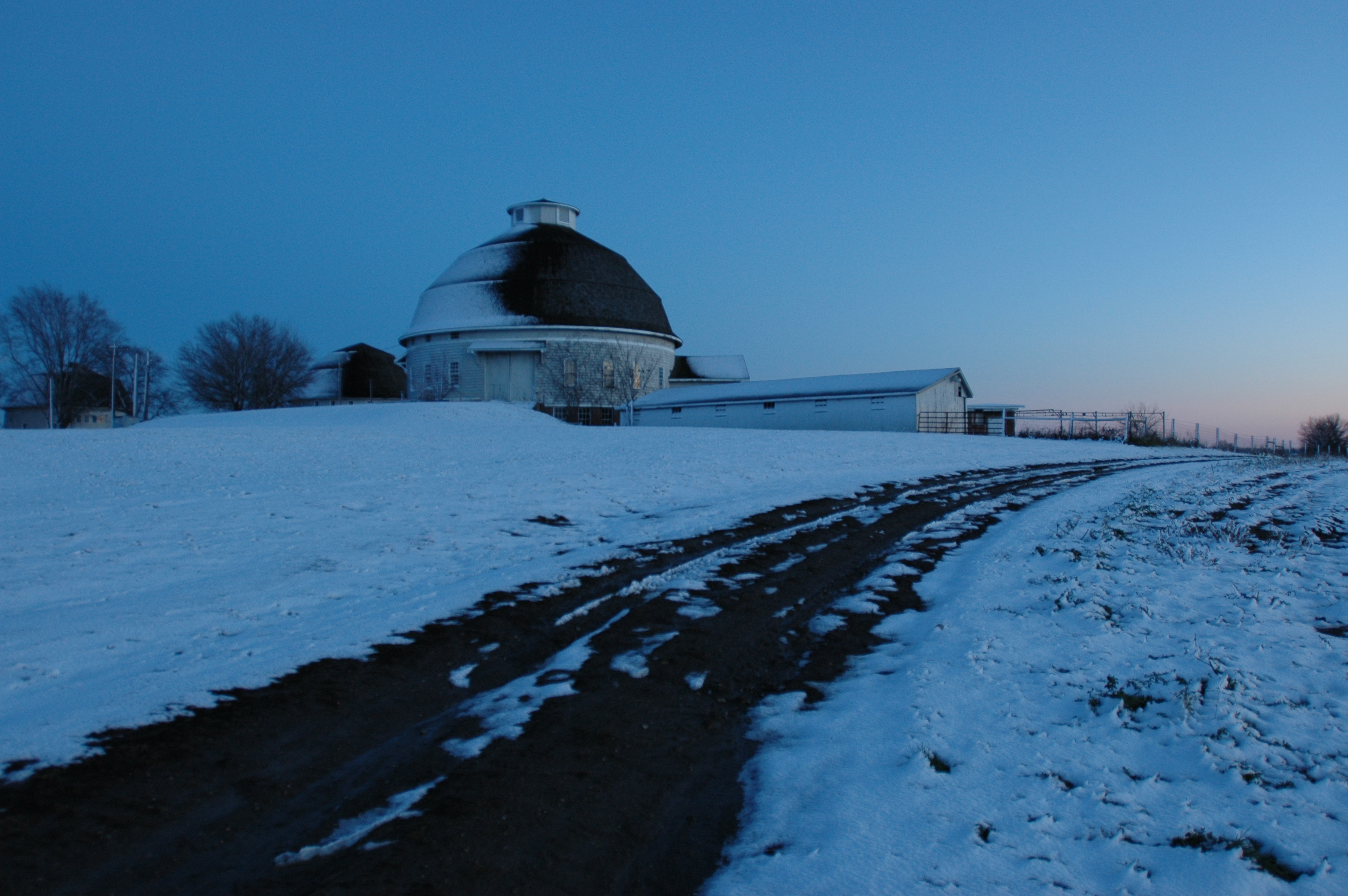Image 53235 (ROUND BARNS, SUNSET, SNOW)